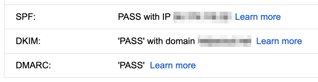 La méthode la plus simple pour vérifier les mécanismes ci-dessus est de consulter un mail dans Gmail et d’afficher le message original (disponible dans les actions possible sur le mail). Vous verrez alors un récapitulatif des différent mécanismes :