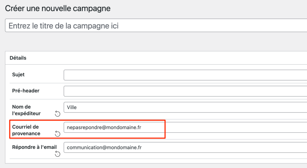 Vérifiez l’adresse d’expédition de la newsletter, vous pouvez optionellement indiquer une adresse différente comme adresse de réponse.