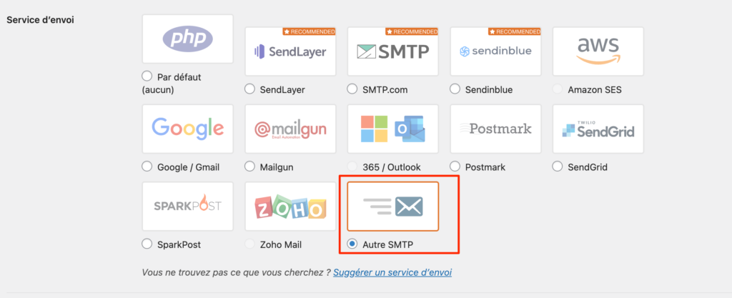 Dans la partie Service d’envoi, cochez « Autre SMTP ».