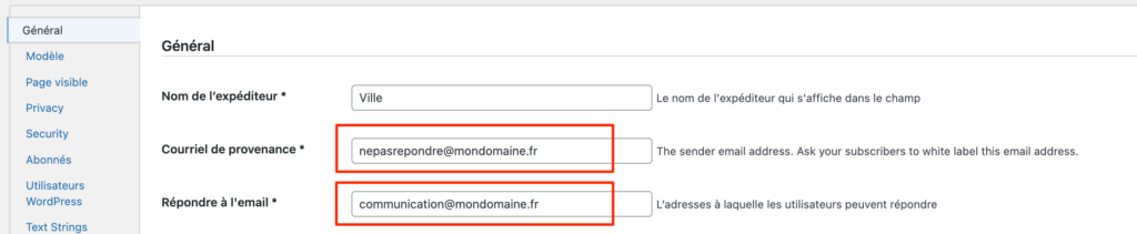 Dernier point de vigilance, lors de la création d’une newsletter veillez à ne pas modifier le champ « Courriel de provenance » afin que celui-ci reste identique à la configuration que vous avez effectuée.