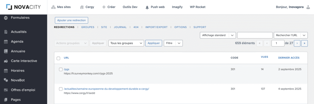 - Classez vos redirections dans des groupes (par exemple : “Pages supprimées”, « QR codes »