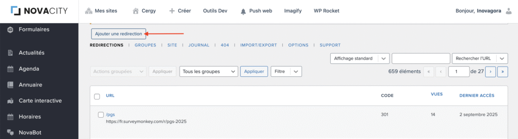 Vous arrivez sur la page de gestion des redirections :